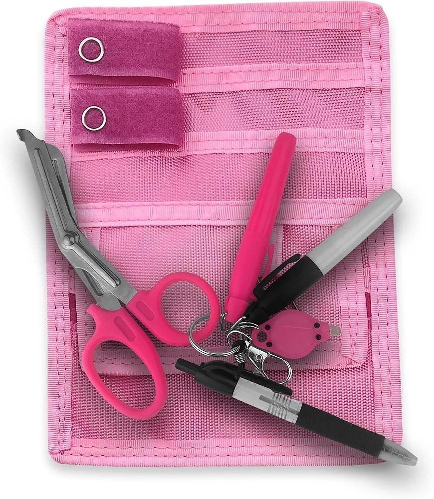 Stay organized and prepared with this smart kit that keeps your essentials right where you need them. Includes durable bandage scissors, a penlight, a highlighter, and a mini flashlight all in a tidy, compact pouch that clips to your scrubs.